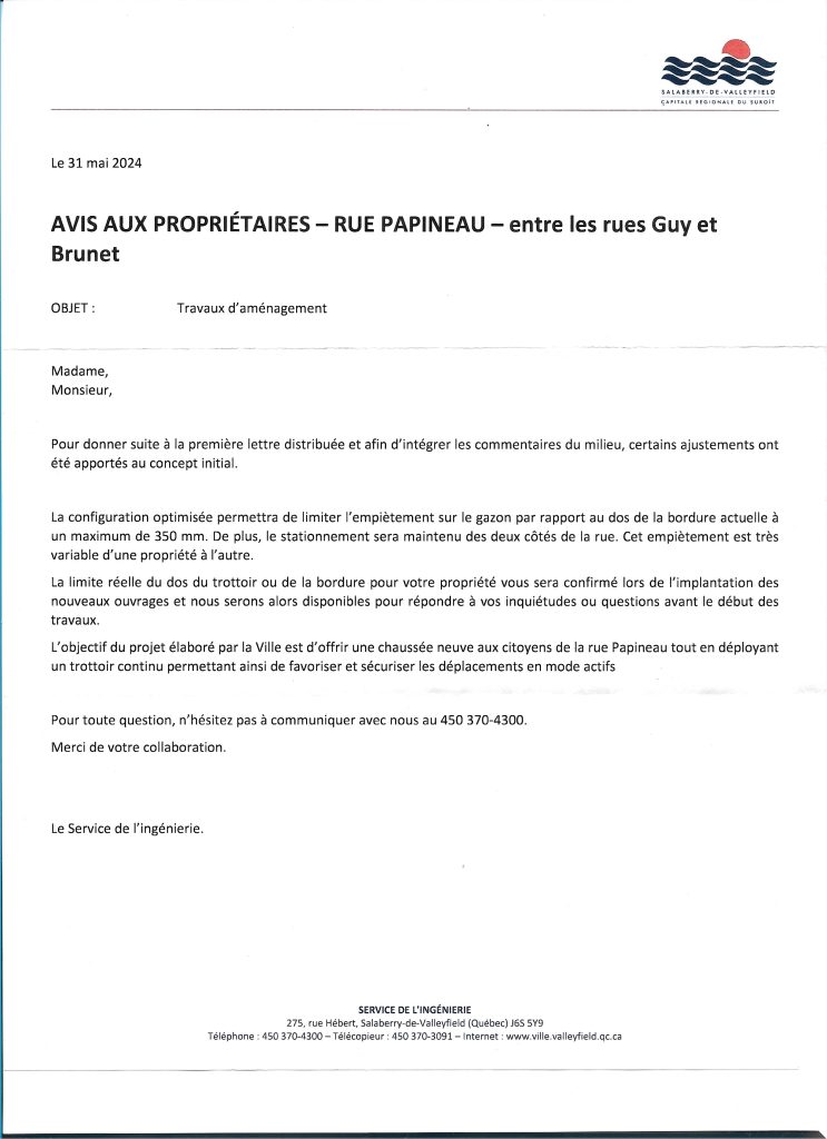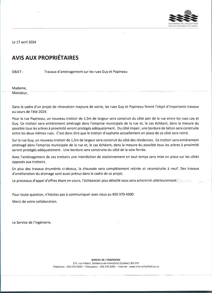 J’invite quiconque aurait une meilleure compréhension des travaux proposés dans l’AVIS AUX PROPRIÉTAIRES du 31 mai 2024 à me les communiquer sur justi.cier@yahoo.ca afin que je puisse apporter les correctifs nécessaire aux paragraphes qui suivent.