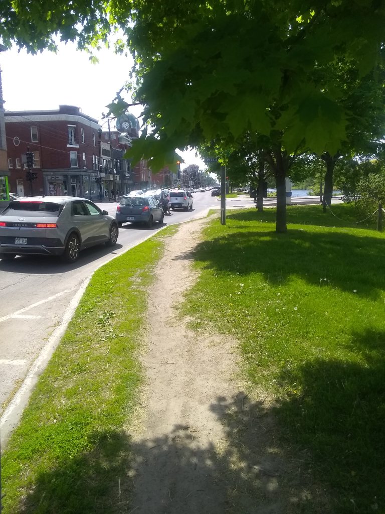 Pendant ce temps, il y a une « trail à vache » d’une vingtaine de mètres qui longe la rue Victoria du côté du canal entre l’entrée du stationnement du Parc Sauvé et l’avenue du Centenaire.